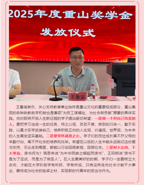 【頭條】金秋筑夢 愛責同行—重山集團舉行2025年度重山獎學金發(fā)放儀式