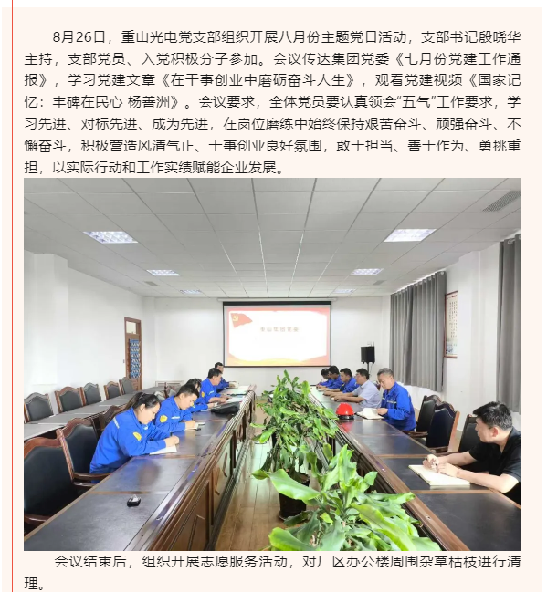 【黨建】重山光電黨支部開展八月份主題黨日活動(dòng)