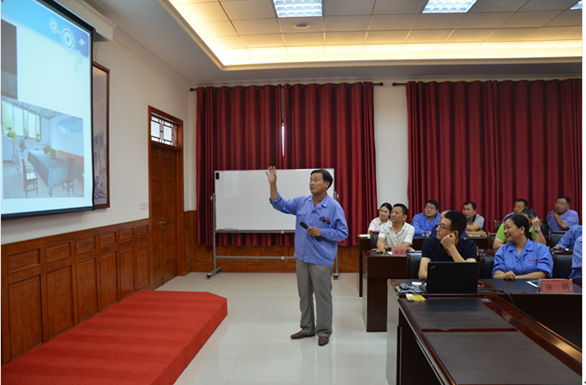 集團(tuán)人力與運(yùn)營(yíng)部張威經(jīng)理以PPT形式通報(bào)集團(tuán)5S現(xiàn)場(chǎng)改善活動(dòng)進(jìn)度
