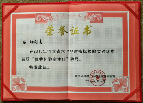 本次大會(huì)重點(diǎn)對“河北省水泥品質(zhì)指標(biāo)檢驗(yàn)大對比”活動(dòng)的獲獎(jiǎng)企業(yè)進(jìn)行了表彰獎(jiǎng)勵(lì),黃驊三陽公司以優(yōu)異的成績榮獲水泥檢驗(yàn)“全優(yōu)單位”榮譽(yù)稱號,苗炳榮獲“優(yōu)秀化驗(yàn)室主任”榮譽(yù)稱號。