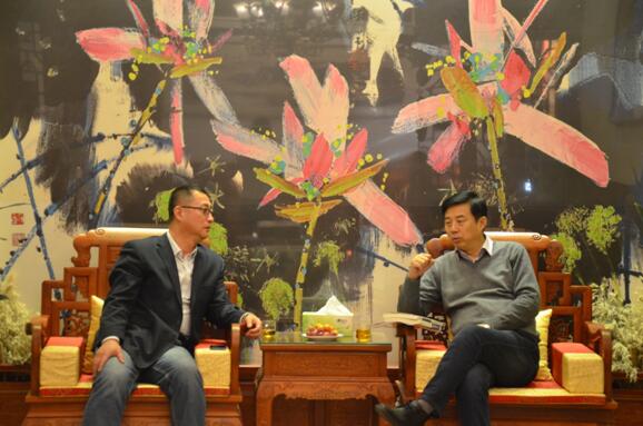 孔祥忠會(huì)長(zhǎng)(右)王魯淄總經(jīng)理交流