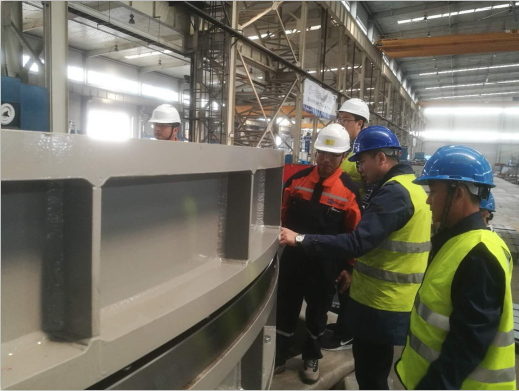 3月26日,魯中水泥劉勇副總經(jīng)理、供應(yīng)部臧衛(wèi)東、旋窯車間王克強(qiáng)赴青島史密斯公司現(xiàn)場(chǎng)查驗(yàn)熱盤爐預(yù)裝進(jìn)度。劉勇副總經(jīng)理一行與相關(guān)技術(shù)人員就設(shè)備規(guī)格、材質(zhì)等進(jìn)行了溝通交流,并根據(jù)組裝進(jìn)度最終確定了交貨工期。同時(shí),安排王克強(qiáng)主任在青島對(duì)熱盤爐組裝情況進(jìn)行現(xiàn)場(chǎng)監(jiān)督。