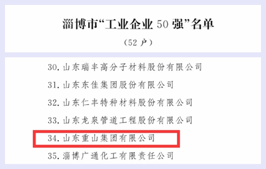 【喜訊】山東重山集團再次榮膺淄博市“工業(yè)企業(yè)50強”