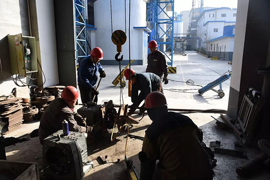 預(yù)處理車間工人們正在調(diào)整設(shè)備