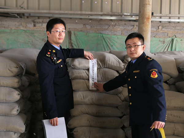 4月24日,魯中水泥銷(xiāo)售公司東營(yíng)片區(qū)業(yè)務(wù)人員在市場(chǎng)摸排調(diào)研中發(fā)現(xiàn)廣饒縣小崗建材商戶(hù)出售的“重山”品牌PF32.5水泥與公司產(chǎn)品外包裝嚴(yán)重不符,一輛車(chē)牌號(hào)為魯E28090車(chē)輛滿(mǎn)載重山牌水泥在門(mén)店外售賣(mài)。經(jīng)多方走訪調(diào)查,公司及各經(jīng)銷(xiāo)商近期PF32.5型號(hào)水泥并沒(méi)有銷(xiāo)售給小崗建材,最終確定為假冒產(chǎn)品。  隨后,公司主動(dòng)聯(lián)系當(dāng)?shù)厥袌?chǎng)監(jiān)管執(zhí)法部門(mén),并整理相關(guān)材料匯報(bào)廣饒縣市場(chǎng)監(jiān)管局,執(zhí)法部門(mén)十分重視,在做好充分摸排工作后,于4月26日與公司打假人員聯(lián)合展開(kāi)行動(dòng),當(dāng)場(chǎng)查獲假冒重山PF32.5型號(hào)水泥27噸、假冒重山PC42.5水泥6噸。本次打假行動(dòng)既是對(duì)合法經(jīng)銷(xiāo)商的一種鼓勵(lì),也是對(duì)非法謀利者的沉痛打擊,起到了凈化當(dāng)?shù)厮嗍袌?chǎng)的作用,彰顯了公司堅(jiān)決維護(hù)品牌權(quán)益和消費(fèi)者利益的決心。