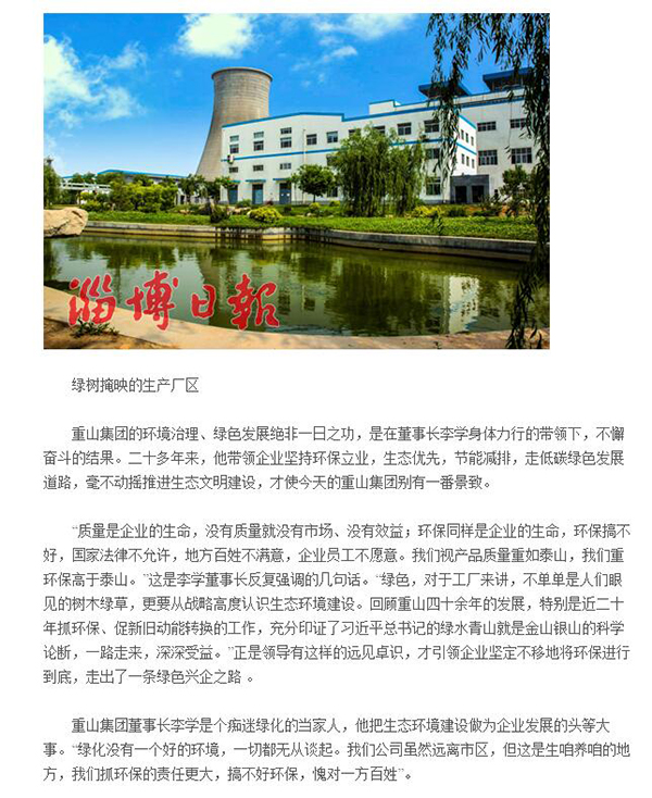 生態(tài)高顏值 發(fā)展高素質(zhì) —淄博新聞媒體刊發(fā)重山集團打造生態(tài)花園式工廠實踐紀實