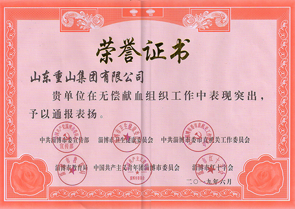 多年來,重山集團始終堅持“為員工謀福祉 為社會做貢獻”的企業(yè)愿景。發(fā)展自身經(jīng)濟的同時,積極參與、關心、支持無償獻血事業(yè)。2018年,集團積極響應淄博市 “全民無償獻血月”的聯(lián)合倡議,組織開展“奉獻點滴之愛 弘揚熱血重山”愛心公益獻血活動,打響了淄博市首屆“全民無償獻血月”第一炮,活動當天在李學董事長的帶領下,150余名重山干部員工獻血58600毫升。以實際行動體現(xiàn)了重山人的責任和擔當,為推動全市無償獻血事業(yè)做出了積極貢獻。