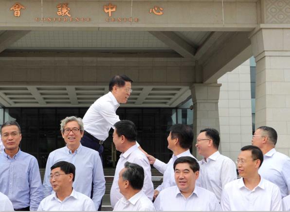 步入合影現(xiàn)場,面對站好位置,等待合影的企業(yè)家們,江敦濤書記提議說,“企業(yè)家們很辛苦。毫不夸張地說,企業(yè)家就是我們的’衣食父母’。我建議,企業(yè)家要站前排,領導站后臺,當后盾。