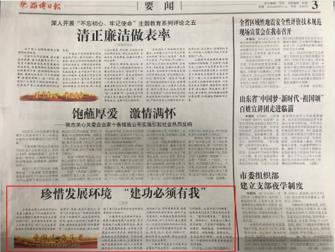 9月28日、10月8日,《淄博日?qǐng)?bào)》、《淄博晚報(bào)》、《淄博新聞網(wǎng)》等新聞媒體分別刊發(fā)了重山集團(tuán)轉(zhuǎn)型升級(jí),堅(jiān)持綠色質(zhì)量發(fā)展的多篇文章。