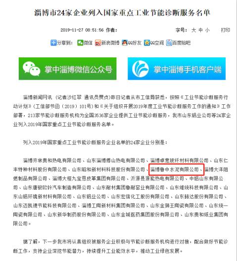 魯中水泥被列入國家重點工業(yè)節(jié)能診斷服務(wù)名單