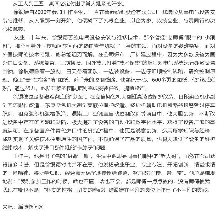 【淄博工匠】“淄博工匠”徐銀德——設備安裝工專治“卡脖子”