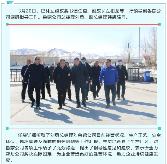 巴林左旗旗委書(shū)記任璽到魯蒙公司調(diào)研指導(dǎo)工作