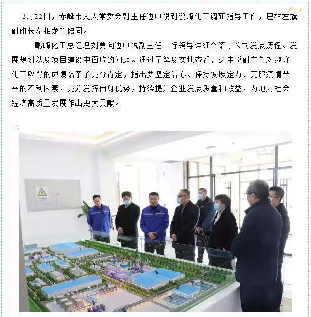 赤峰市人大常委會(huì)副主任邊中悅到鵬峰化工調(diào)研