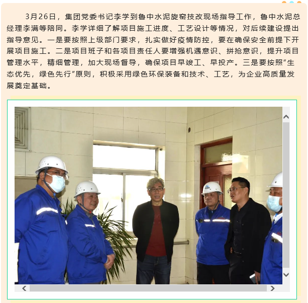 【頭條】集團(tuán)黨委書記李學(xué)到魯中水泥指導(dǎo)項目建設(shè)