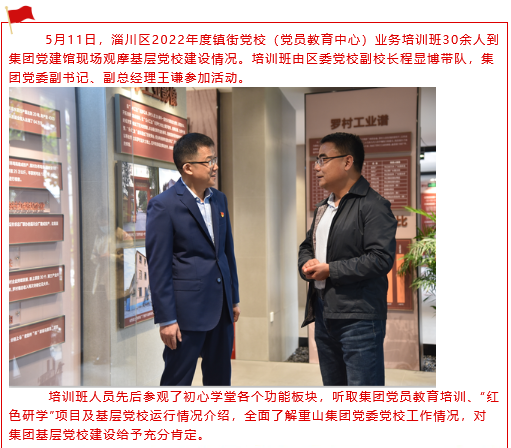 淄川區(qū)2022年度鎮(zhèn)街黨校(黨員教育中心)業(yè)務培訓班到集團觀摩