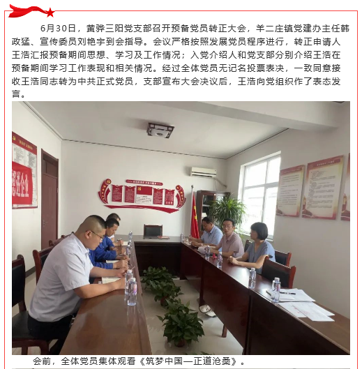 【黨建】黃驊三陽黨支部召開預(yù)備黨員轉(zhuǎn)正大會(huì)