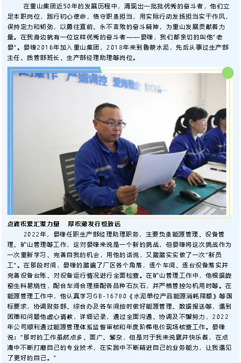 【重山人?重山事】“水泥人”用實踐詮釋工匠精神---記魯蒙水泥粉磨車間主任晏鋒