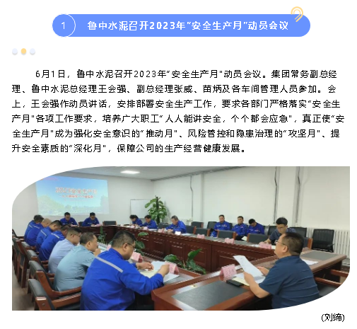 【安全生產(chǎn)月專欄】魯中水泥召開2023年“安全生產(chǎn)月”動員會議、螢澤礦業(yè)召開“安全生產(chǎn)月”啟動會、?魯蒙水泥開展有限空間應(yīng)急演練