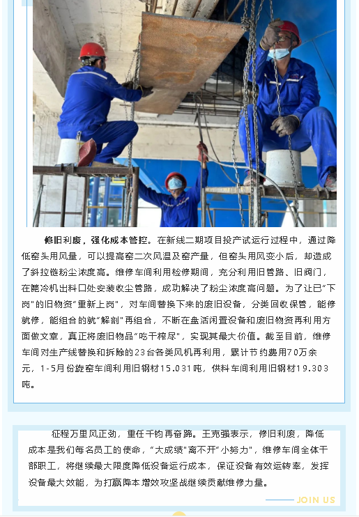 【節(jié)支降本】尋找“降本”出路,積累“增效”力量——魯中水泥旋窯維修車間降本增效側(cè)記
