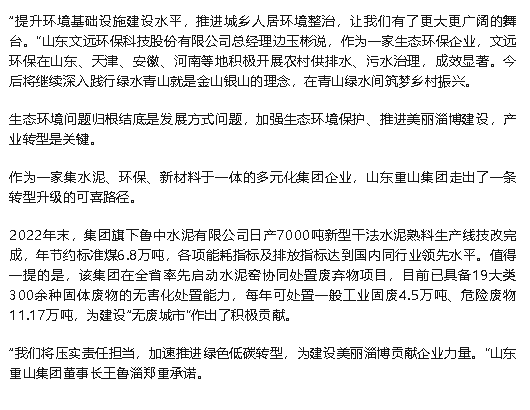 《淄博日報》報道重山集團(tuán)綠色發(fā)展成果
