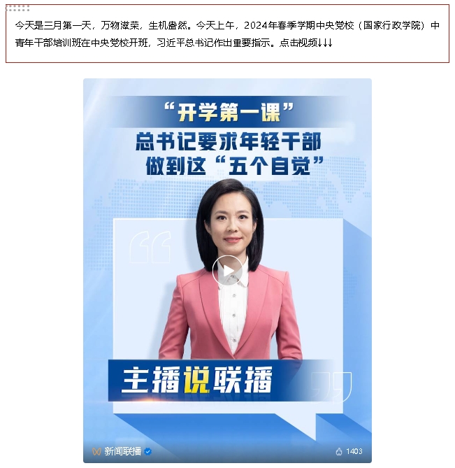 主播說聯(lián)播 | “開學(xué)第一課”,總書記要求年輕干部做到這“五個自覺”