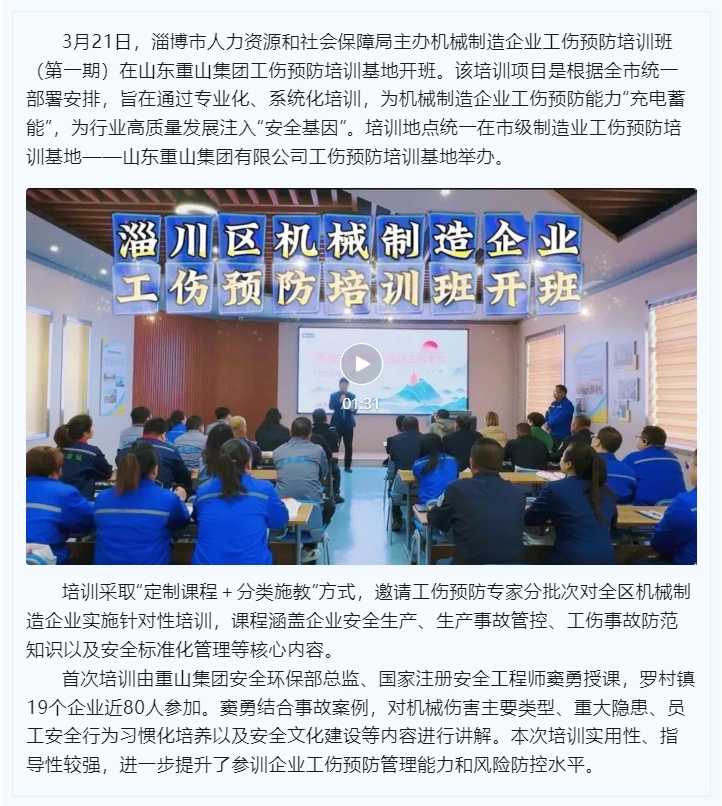 淄川區(qū)機(jī)械制造企業(yè)工傷預(yù)防培訓(xùn)班開班