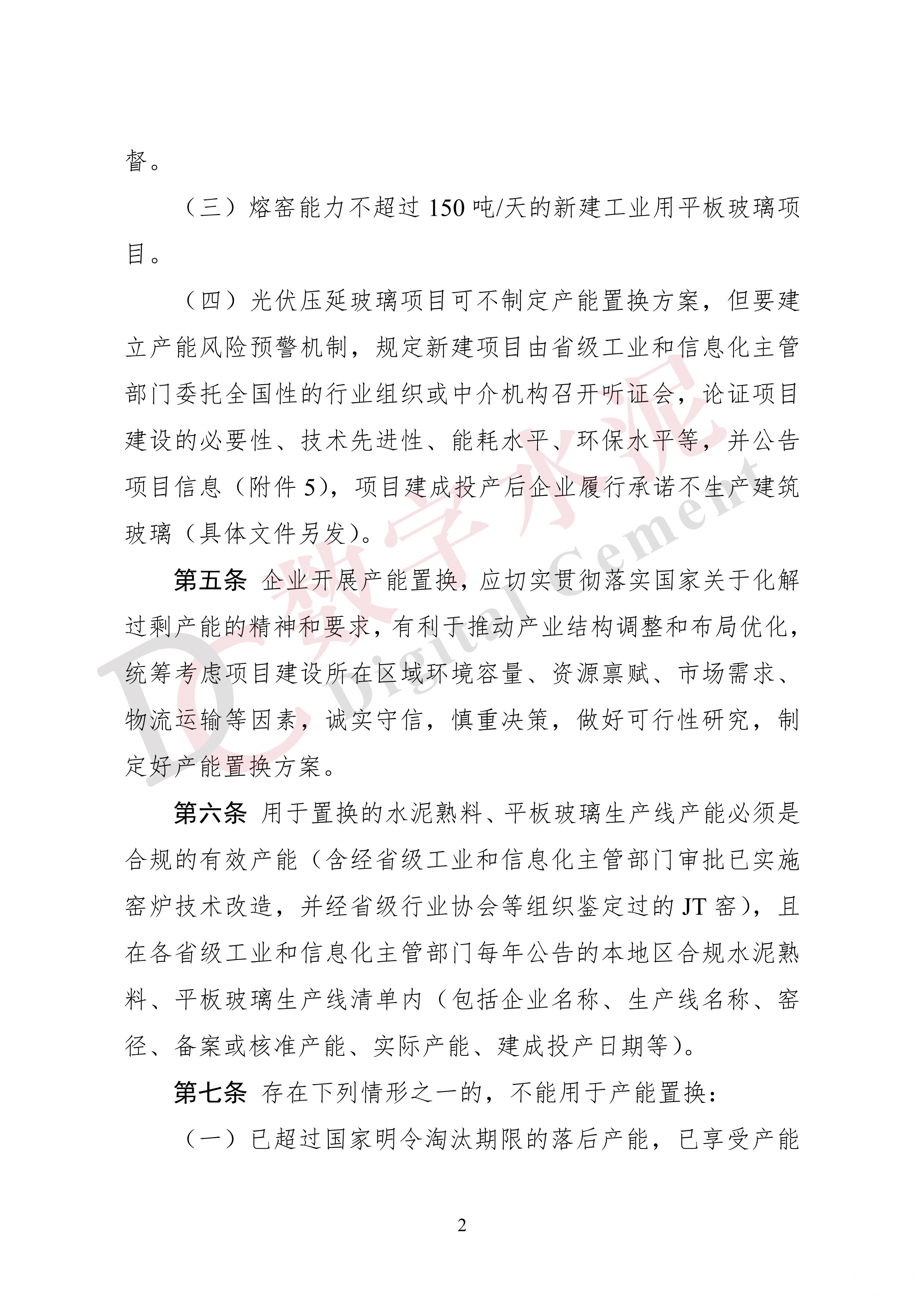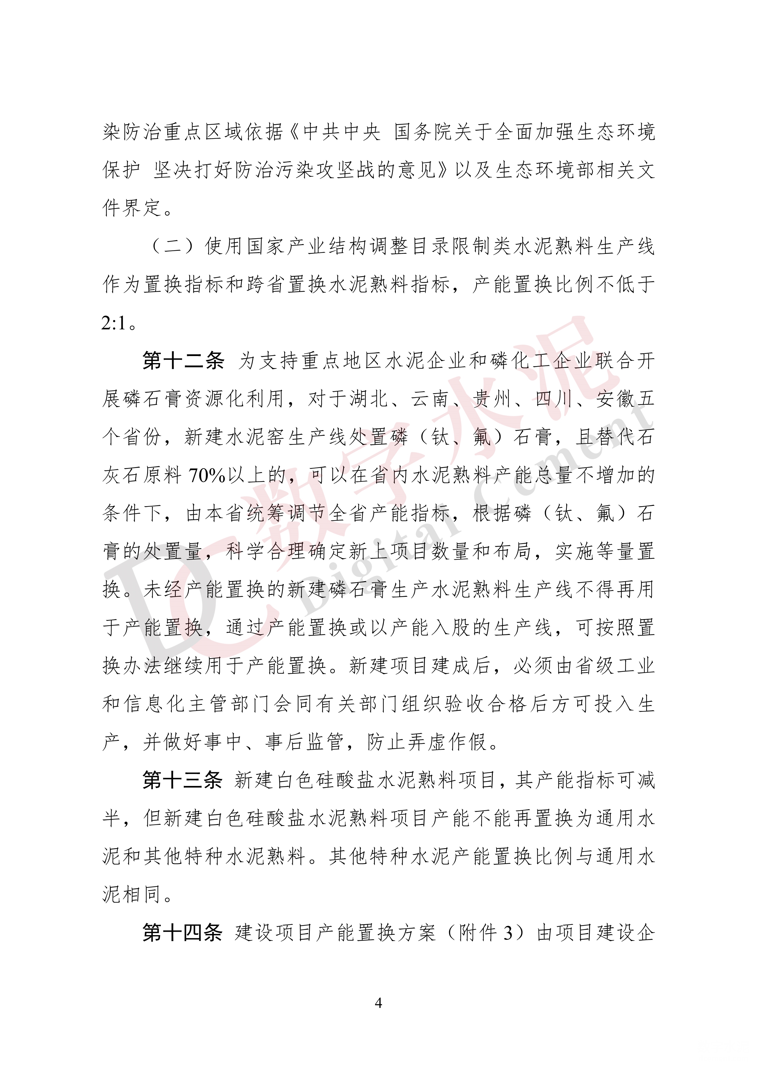 (一)置換比例和置換范圍根據(jù)新形勢做了調(diào)整。一是提高了水泥項目產(chǎn)能置換比例,大氣污染防治重點區(qū)域水泥項目由1.5:1調(diào)整至2:1,非大氣污染防治重點區(qū)域由1.25:1調(diào)整至1.5:1。二是加大低效產(chǎn)能壓減力度,對產(chǎn)業(yè)結構調(diào)整目錄限制類的水泥產(chǎn)能以及跨省置換水泥項目,產(chǎn)能置換比例一律不低于2:1。三是鼓勵固廢綜合利用,湖北、貴州等五省磷(鈦、氟)石膏生產(chǎn)水泥項目產(chǎn)能可實施等量置換。四是保障光伏發(fā)展需要,新上光伏壓延玻璃項目不再要求產(chǎn)能置換。