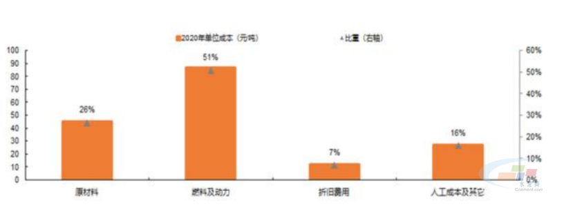 水泥是傳統(tǒng)的高能耗行業(yè),能源成本占水泥生產(chǎn)成本的50%以上。以海螺水泥為例,2020年燃料及動(dòng)力成本占51%,原材料占比26%,折舊占比7%,人工成本及其它占16%。鑒于2021年煤炭價(jià)格大漲,燃料成本或?qū)⒏摺?/strong>