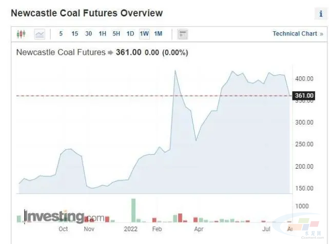 紐卡斯爾煤炭期貨價格 圖片來源:英為財情