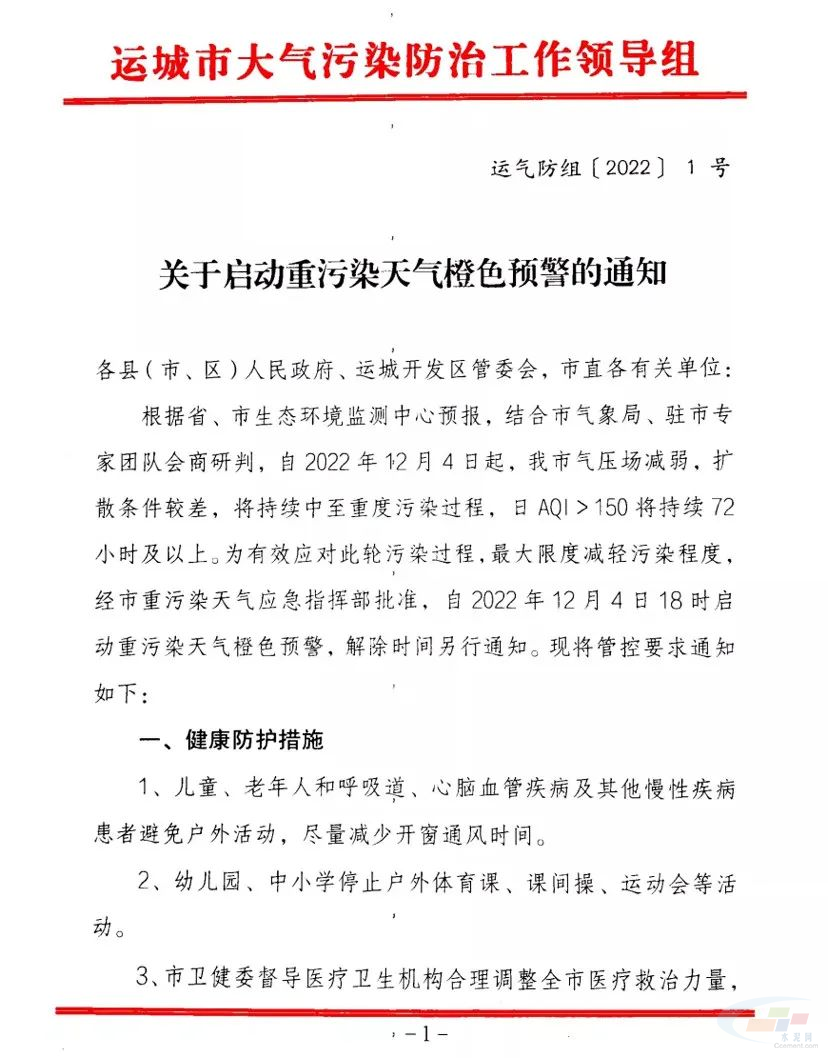 運城:12月4日18時啟動重污染天氣橙色預(yù)警