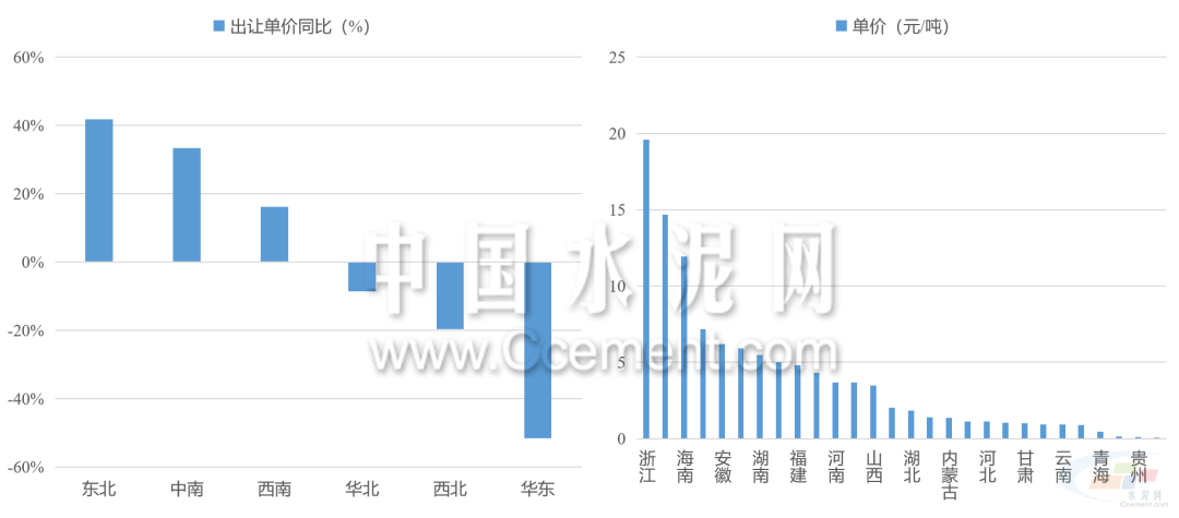 礦權單價整體下降。全國砂石礦權平均成交價格約4元/噸,同比下滑約20%,其中華東礦權交易單價下滑最為明顯。各省出讓的砂石礦單價差距有所縮小。浙江及遼寧是礦權單價最高和最低的省份。具體而言,浙江的交易單價由上半年的30元/噸以上降至20元/噸以下,進一步拉低了華東地區(qū)整體的礦權交易單價。
