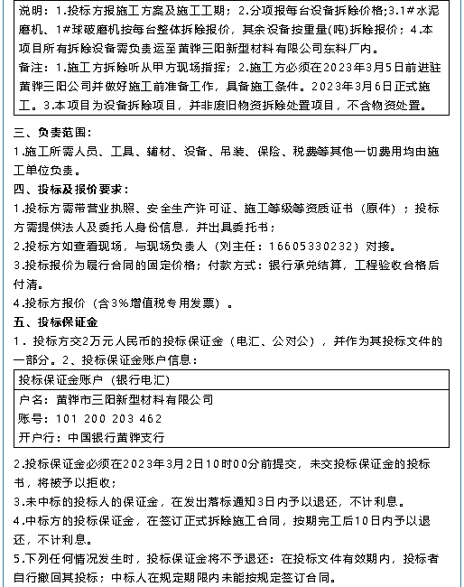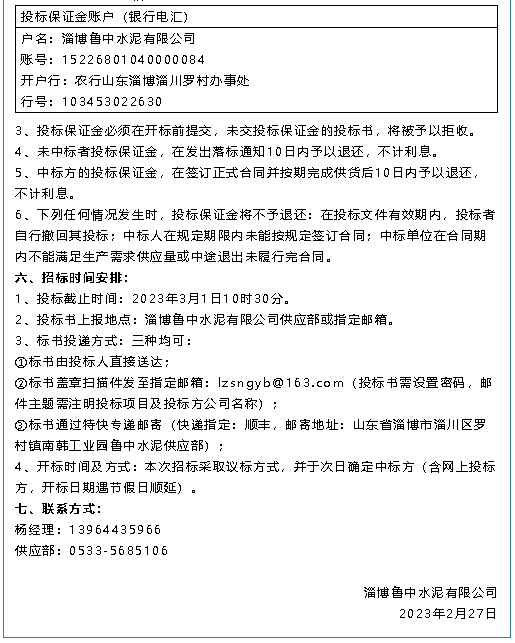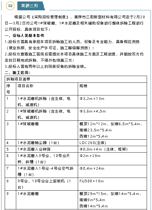 【招標(biāo)公告】魯中水泥、黃驊三陽