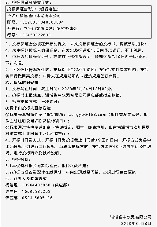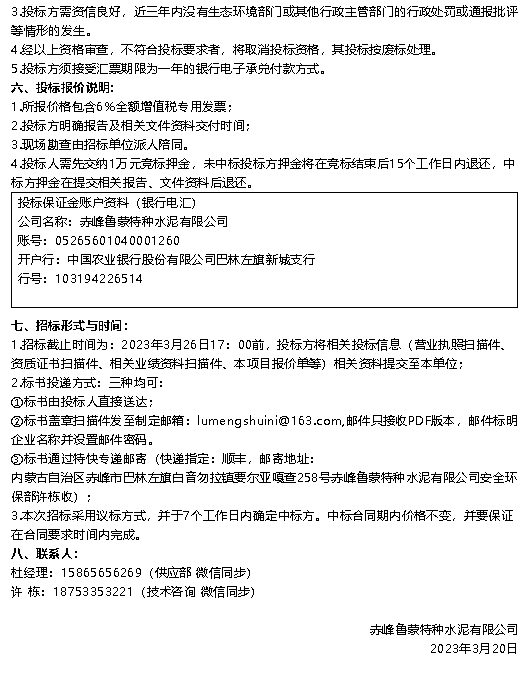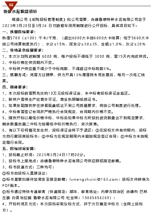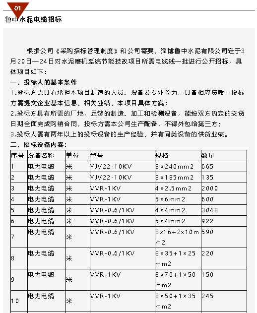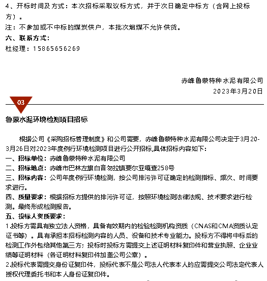 【招標公告】魯中水泥電纜、魯蒙水泥煙煤、環(huán)境檢測項目招標