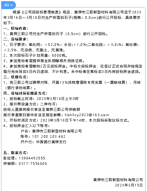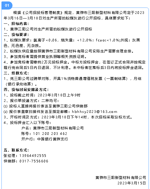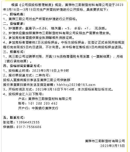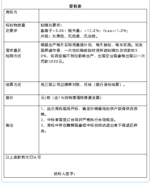 【招標公告】黃驊三陽粉煤灰、爐渣、石子招標