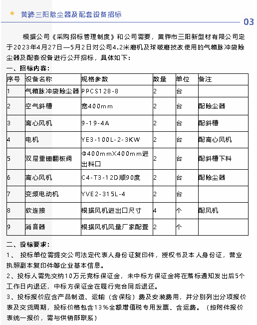 【招標(biāo)公告】黃驊三陽、鵬峰化工