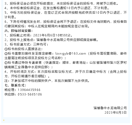 【招標公告】魯中水泥