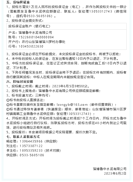 【招標(biāo)公告】魯中水泥