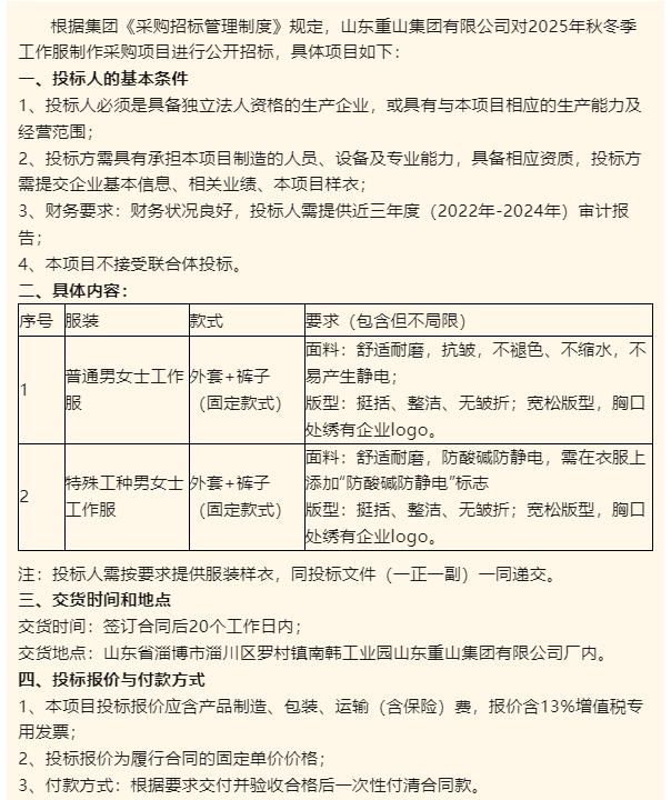 【招標(biāo)公告】重山集團(tuán)