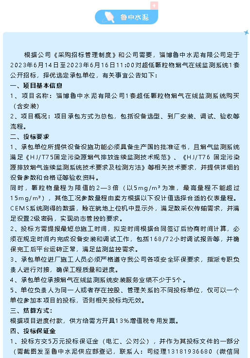 【招標(biāo)公告】魯中水泥、黃驊三陽