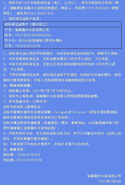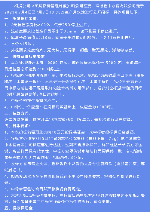 【招標(biāo)公告】魯中水泥