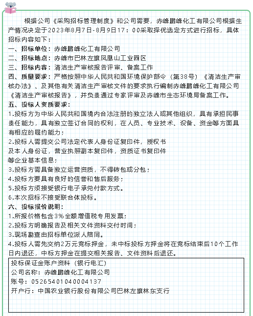 【招標公告】鵬峰化工