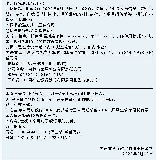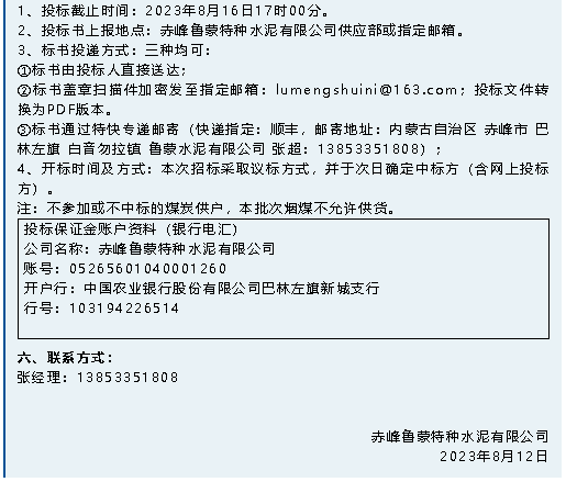 【招標(biāo)公告】魯蒙水泥、螢澤礦業(yè)