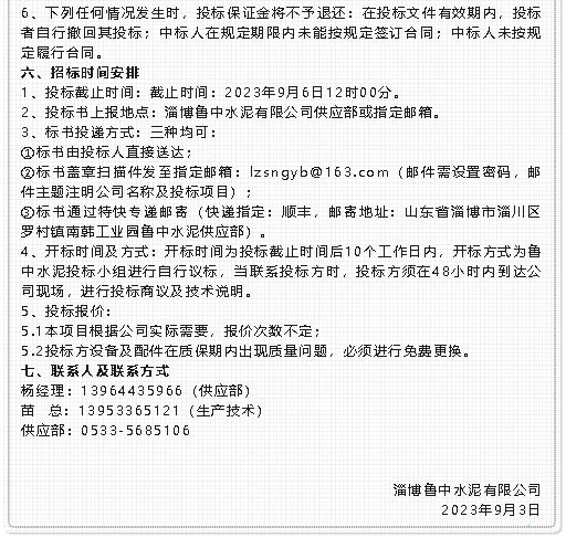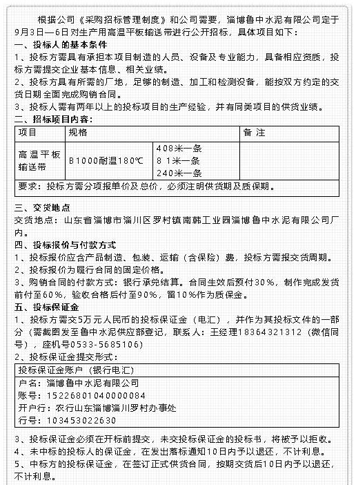 【招標(biāo)公告】魯中水泥