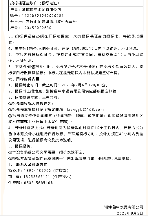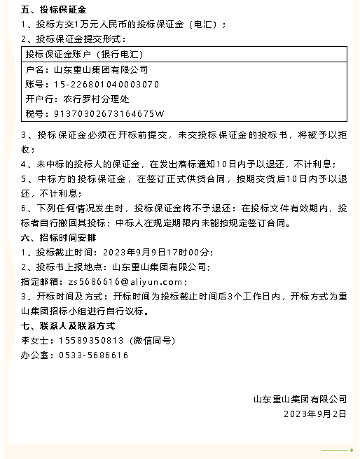 【招標公告】重山集團秋冬季工作服、魯中水泥風機招標