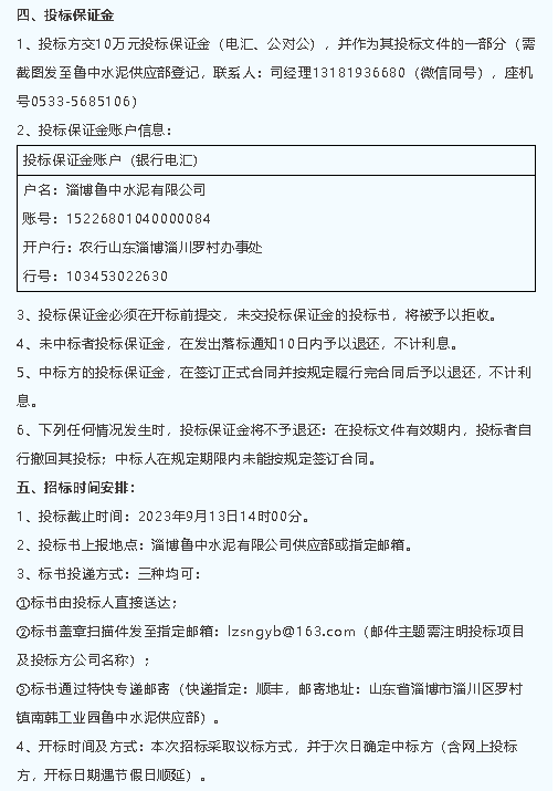 【招標(biāo)公告】魯中水泥、重山光電