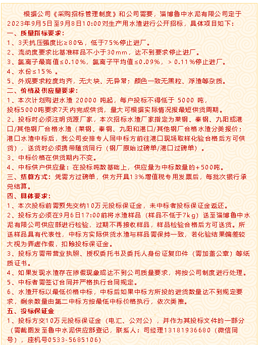 【招標(biāo)公告】魯中水泥