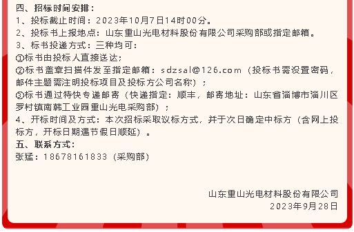 【招標(biāo)公告】重山光電