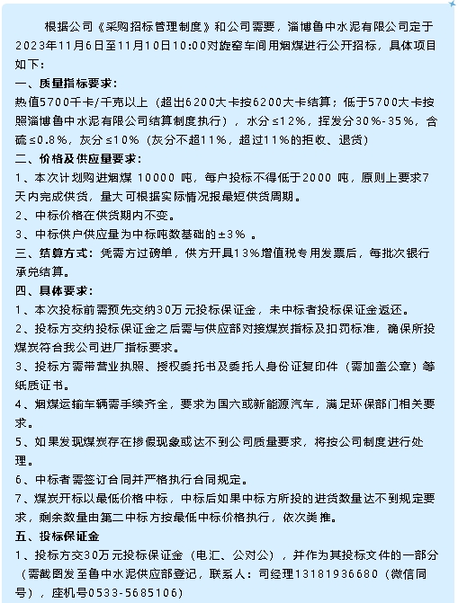 【招標(biāo)公告】魯中水泥