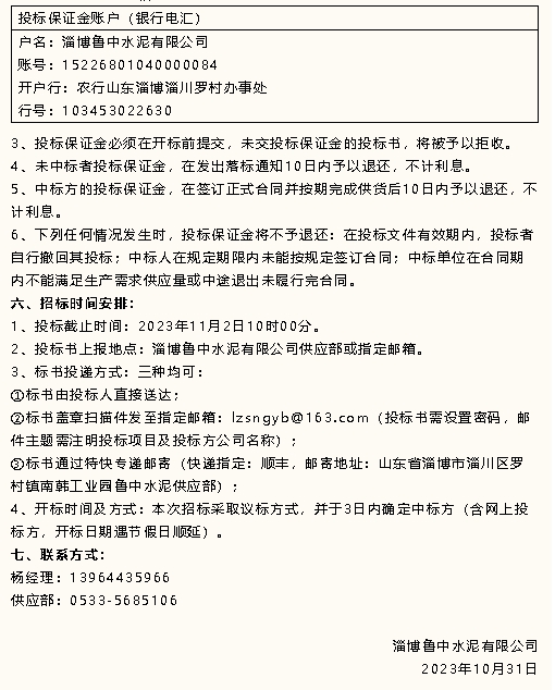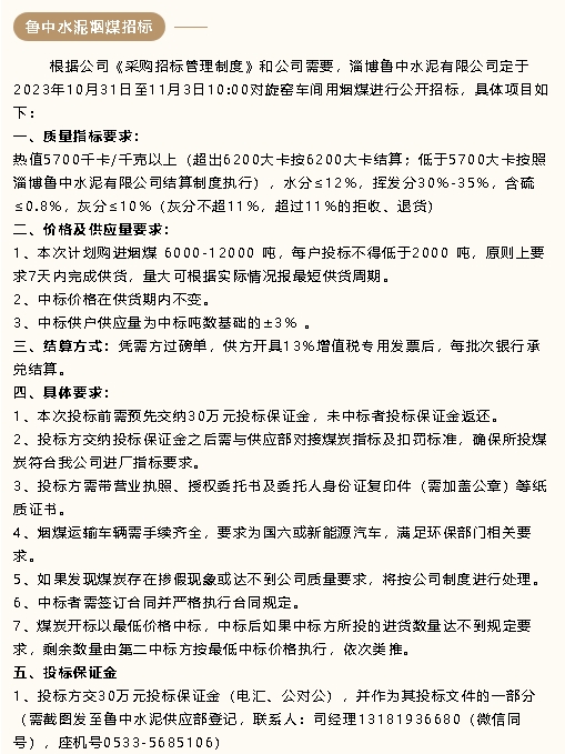 【招標(biāo)公告】魯中水泥