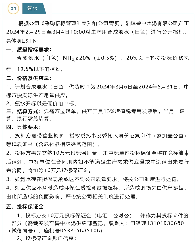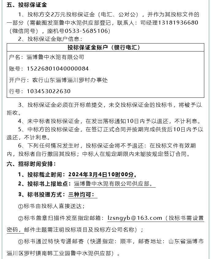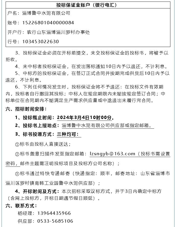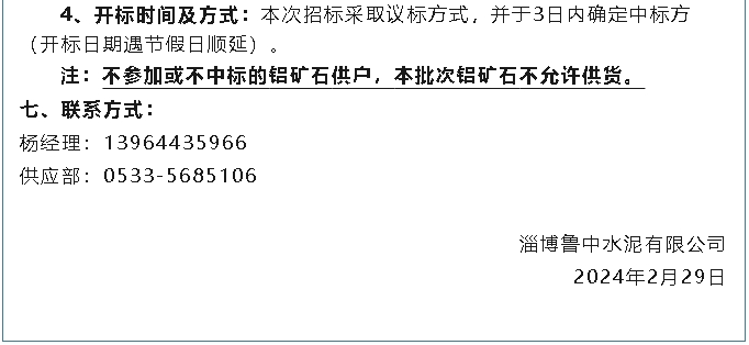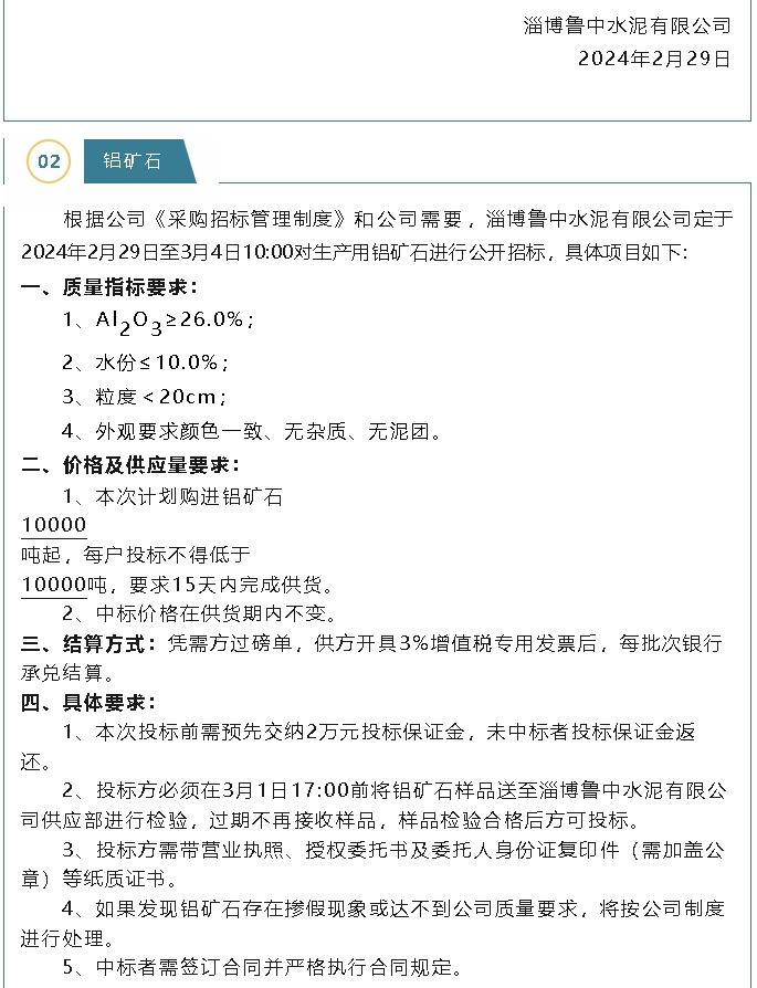 【招標(biāo)公告】魯中水泥